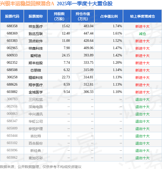 兴银丰运稳益回报混合A的前十大重仓股如下: