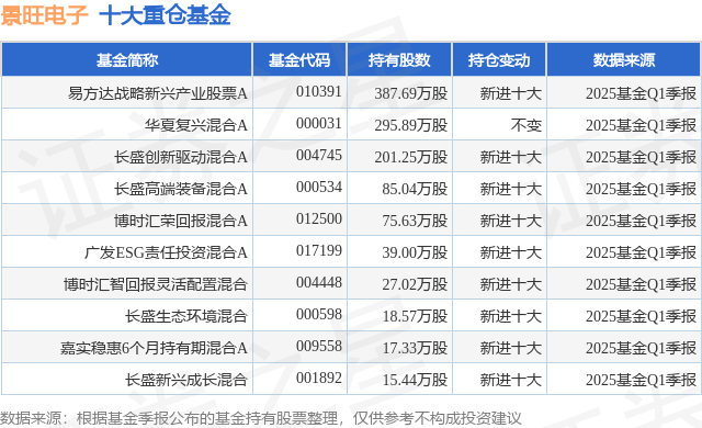 重仓景旺电子的前十大公募基金请见下表: