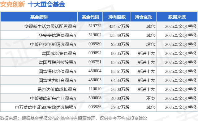 重仓安克创新的前十大公募基金请见下表: