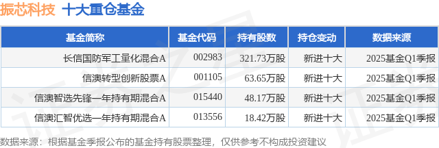 重仓振芯科技的公募基金请见下表: