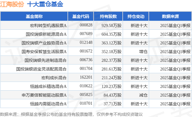 重仓江海股份的前十大公募基金请见下表:
