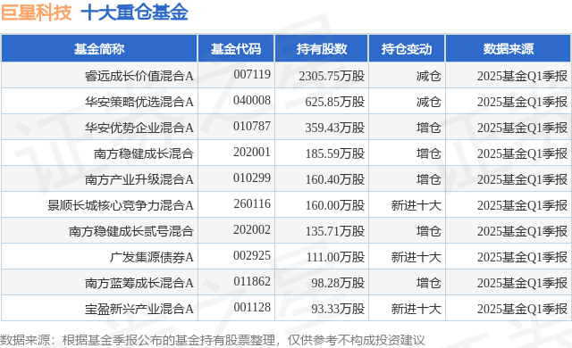 重仓巨星科技的前十大公募基金请见下表: