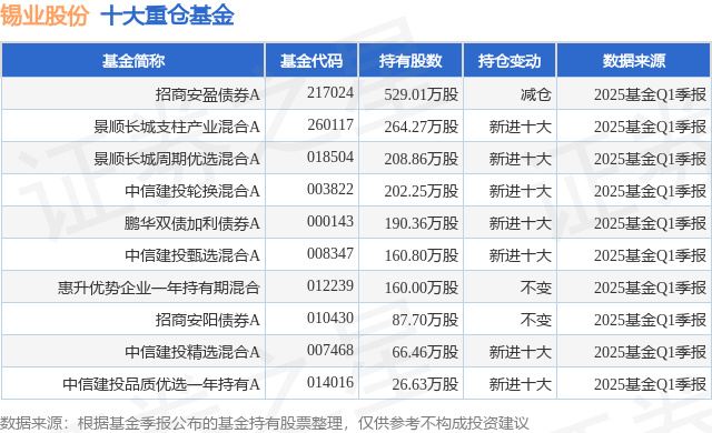 重仓锡业股份的前十大公募基金请见下表: