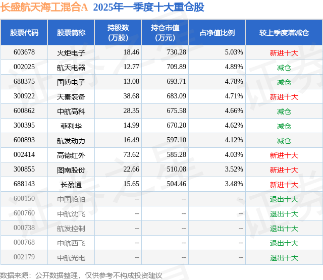 长盛航天海工混合A的前十大重仓股如下: