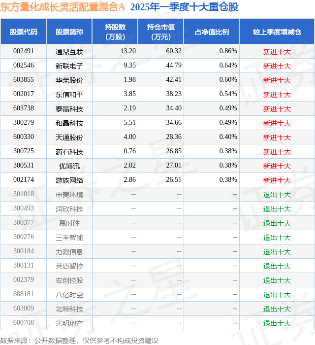 东方量化成长灵活配置混合A的前十大重仓股如下: