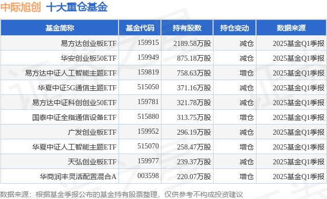 重仓中际旭创的前十大公募基金请见下表: