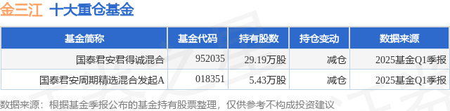 根据2025基金Q1季报公募基金重仓股数据,重仓该股的公募基金共2家,其中持有数量最多的公募基金为国泰君安资管的国泰君安君得诚混合。国泰君安君得诚混合目前规模为1.26亿元,最新净值0.7118(6月30日),较上一交易日上涨0.47%,近一年上涨2.82%。该公募基金现任基金经理为范杨 冯自力。范杨在任的基金产品包括:国泰君安品质生活混合发起A,管理时间为2022年7月19日至今,期间收益率为-5.89%;国泰君安君得鑫两年持有混合A,管理时间为2023年7月5日至今,期间收益率为-3.83%;国泰君安消费机遇混合发起A,管理时间为2023年9月19日至今,期间收益率为-5.15%;国泰君安价值精选混合发起式A,管理时间为2024年5月29日至今,期间收益率为3.0%。冯自力在任的基金产品包括:国泰君安周期精选混合发起A,管理时间为2023年5月16日至今,期间收益率为7.17%;国泰君安新材料混合发起A,管理时间为2023年9月19日至今,期间收益率为-4.26%;国泰君安君得鑫两年持有混合A,管理时间为2024年1月22日至今,期间收益率为14.18%;