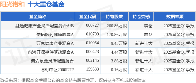 重仓阳光诺和的公募基金请见下表: