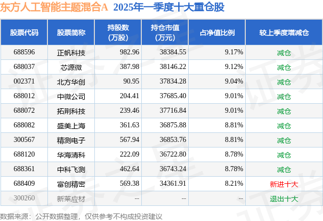 根据2025基金Q1季报公募基金重仓股数据,重仓该股的公募基金共50家,其中持有数量最多的公募基金为东方基金的东方人工智能主题混合A。东方人工智能主题混合A目前规模为5.99亿元,最新净值1.1029(6月30日),较上一交易日上涨1.41%,近一年上涨36.73%。该公募基金现任基金经理为严凯。严凯在任的基金产品包括:东方惠新灵活配置混合A,管理时间为2021年8月11日至今,期间收益率为-5.83%;东方创新科技混合,管理时间为2023年11月13日至今,期间收益率为12.01%。