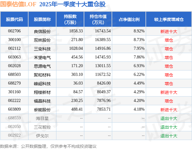 国泰估值LOF的前十大重仓股如下: