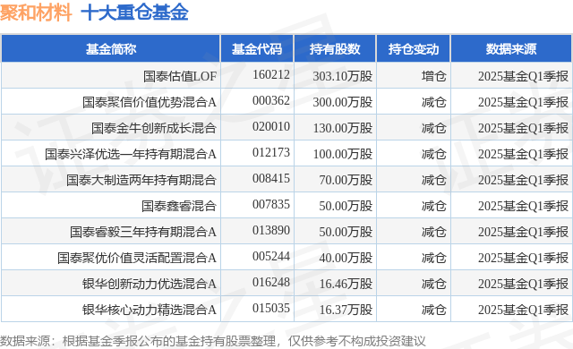 重仓聚和材料的前十大公募基金请见下表: