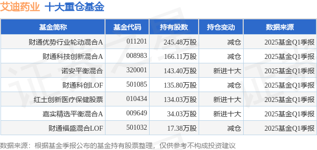 重仓艾迪药业的公募基金请见下表: