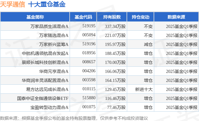 重仓天孚通信的前十大公募基金请见下表: