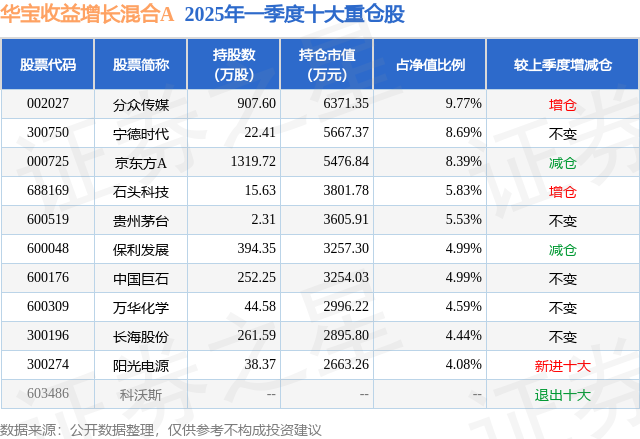 根据2025基金Q1季报公募基金重仓股数据,重仓该股的公募基金共1家,其中持有数量最多的公募基金为华宝基金的华宝收益增长混合A。华宝收益增长混合A目前规模为6.51亿元,最新净值7.1508(7月1日),较上一交易日上涨0.95%,近一年上涨13.13%。该公募基金现任基金经理为毛文博。毛文博在任的基金产品包括:华宝ESG责任投资混合A,管理时间为2023年4月28日至今,期间收益率为-7.45%。