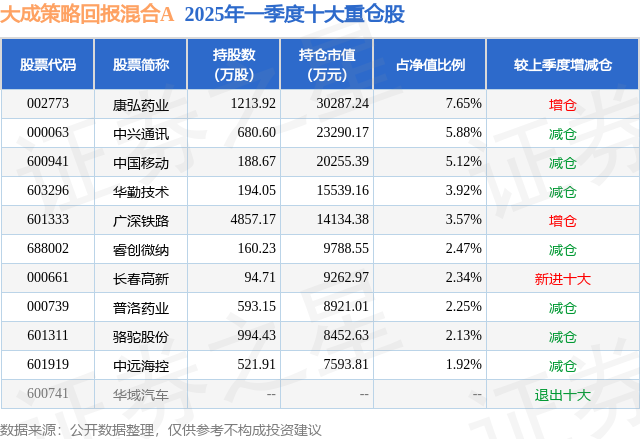 根据2025基金Q1季报公募基金重仓股数据,重仓该股的公募基金共28家,其中持有数量最多的公募基金为大成基金的大成策略回报混合A。大成策略回报混合A目前规模为34.42亿元,最新净值1.1613(7月1日),较上一交易日上涨0.28%,近一年上涨18.93%。该公募基金现任基金经理为徐彦。徐彦在任的基金产品包括:大成睿享混合A,管理时间为2019年12月30日至今,期间收益率为89.65%;大成竞争优势混合A,管理时间为2019年12月30日至今,期间收益率为108.32%;大成投资严选六月持有混合A,管理时间为2021年7月16日至今,期间收益率为32.23%。