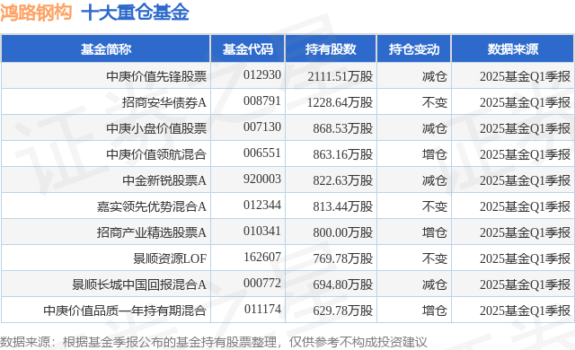 重仓鸿路钢构的前十大公募基金请见下表: