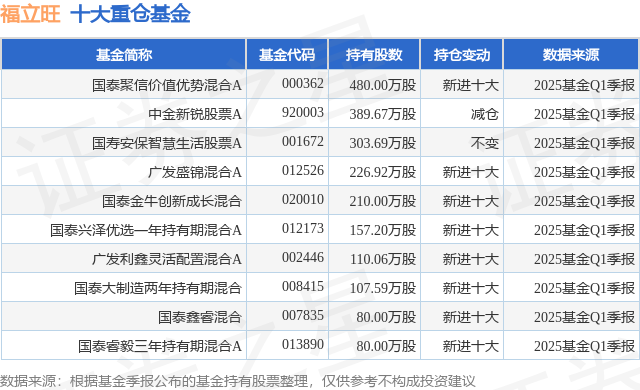根据2025基金Q1季报公募基金重仓股数据,重仓该股的公募基金共15家,其中持有数量最多的公募基金为国泰基金的国泰聚信价值优势混合A。国泰聚信价值优势混合A目前规模为13.79亿元,最新净值2.111(7月2日),较上一交易日下跌0.61%,近一年上涨20.63%。该公募基金现任基金经理为程洲。程洲在任的基金产品包括:国泰金牛创新成长混合,管理时间为2015年1月26日至今,期间收益率为107.39%;国泰大农业股票A,管理时间为2017年6月15日至今,期间收益率为70.07%;国泰聚优价值灵活配置混合A,管理时间为2017年11月15日至今,期间收益率为59.2%。