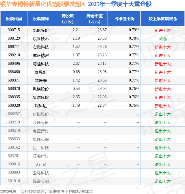 银华专精特新量化优选股票发起A的前十大重仓股如下: