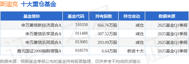 根据2025基金Q1季报公募基金重仓股数据,重仓该股的公募基金共4家,其中持有数量最多的公募基金为申万菱信基金的申万菱信新经济混合A。申万菱信新经济混合A目前规模为12.32亿元,最新净值0.8889(7月3日),较上一交易日上涨0.83%,近一年上涨11.08%。该公募基金现任基金经理为付娟。付娟在任的基金产品包括:申万菱信乐享混合A,管理时间为2021年3月24日至今,期间收益率为-7.8%;申万菱信乐同混合A,管理时间为2021年9月6日至今,期间收益率为-31.77%;申万菱信乐融一年持有混合A,管理时间为2022年6月17日至今,期间收益率为50.37%。