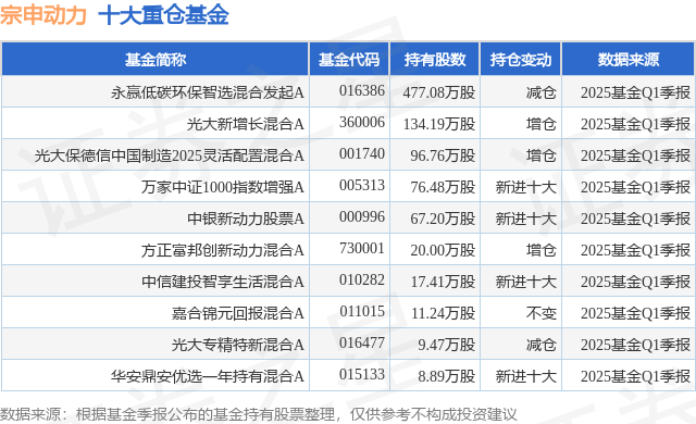 根据2025基金Q1季报公募基金重仓股数据,重仓该股的公募基金共14家,其中持有数量最多的公募基金为永赢基金的永赢低碳环保智选混合发起A。永赢低碳环保智选混合发起A目前规模为1.28亿元,最新净值0.836(7月4日),较上一交易日下跌1.21%,近一年上涨46.1%。该公募基金现任基金经理为胡泽。胡泽在任的基金产品包括:永赢新能源智选混合发起A,管理时间为2024年7月15日至今,期间收益率为-25.04%;永赢高端制造混合A,管理时间为2024年7月29日至今,期间收益率为31.54%;永赢制造升级智选混合发起A,管理时间为2025年6月11日至今,期间收益率为-2.77%。