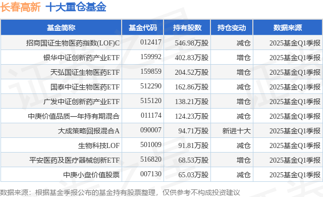 重仓长春高新的前十大公募基金请见下表: