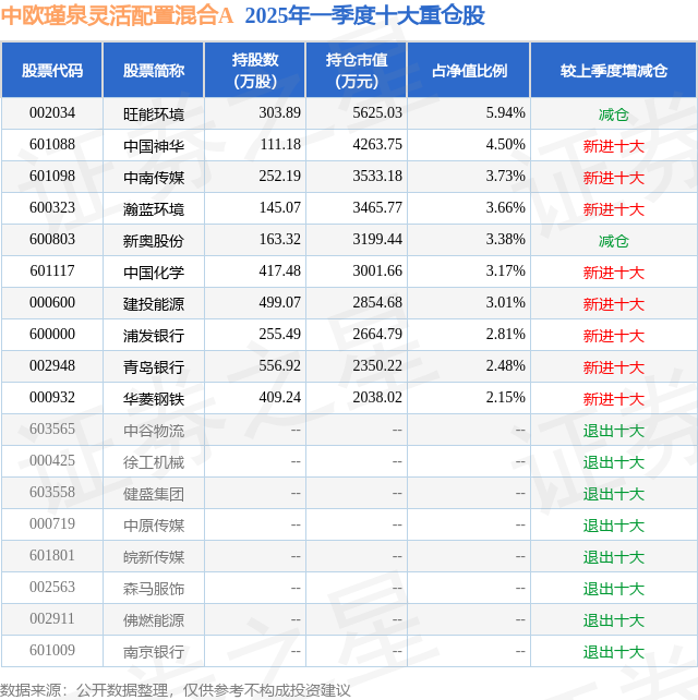 中欧瑾泉灵活配置混合A的前十大重仓股如下: