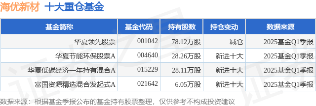 重仓海优新材的公募基金请见下表: