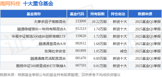 根据2025基金Q1季报公募基金重仓股数据,重仓该股的公募基金共7家,其中持有数量最多的公募基金为摩根士丹利基金的大摩多因子策略混合。大摩多因子策略混合目前规模为5.79亿元,最新净值1.2(7月4日),较上一交易日下跌0.66%,近一年上涨20.72%。该公募基金现任基金经理为余斌。余斌在任的基金产品包括:大摩量化多策略股票,管理时间为2019年8月20日至今,期间收益率为32.27%;大摩深证300指数增强,管理时间为2019年8月20日至今,期间收益率为27.26%;大摩ESG量化混合,管理时间为2020年7月16日至今,期间收益率为-8.04%。
