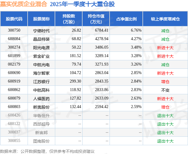 根据2025基金Q1季报公募基金重仓股数据,重仓该股的公募基金共6家,其中持有数量最多的公募基金为嘉实基金的嘉实优质企业混合。嘉实优质企业混合目前规模为10.03亿元,最新净值1.266(7月4日),较上一交易日下跌0.78%,近一年上涨19.43%。该公募基金现任基金经理为刘晗竹。刘晗竹在任的基金产品包括:嘉实均衡配置混合,管理时间为2023年9月19日至今,期间收益率为3.25%;