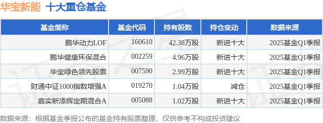 根据2025基金Q1季报公募基金重仓股数据,重仓该股的公募基金共5家,其中持有数量最多的公募基金为鹏华基金的鹏华动力LOF。鹏华动力LOF目前规模为11.24亿元,最新净值0.9(7月7日),较上一交易日下跌0.77%,近一年上涨19.68%。该公募基金现任基金经理为蒋鑫。蒋鑫在任的基金产品包括:鹏华健康环保混合,管理时间为2016年6月24日至今,期间收益率为106.14%;鹏华普天收益混合,管理时间为2017年7月29日至今,期间收益率为88.97%;鹏华优选成长混合A,管理时间为2020年12月16日至今,期间收益率为-28.4%;鹏华远见成长混合A,管理时间为2021年6月2日至今,期间收益率为-22.02%。