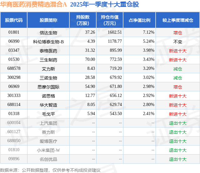根据2025基金Q1季报公募基金重仓股数据,重仓该股的公募基金共2家,其中持有数量最多的公募基金为华商基金的华商医药消费精选混合A。华商医药消费精选混合A目前规模为2.1亿元,最新净值0.7427(7月7日),较上一交易日下跌1.63%,近一年上涨21.0%。该公募基金现任基金经理为孙蔚。孙蔚在任的基金产品包括:华商盛世成长混合,管理时间为2023年1月4日至今,期间收益率为16.39%;华商健康生活混合,管理时间为2023年12月29日至今,期间收益率为2.13%;华商甄选回报混合A,管理时间为2023年12月29日至今,期间收益率为35.15%。