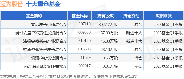 根据2025基金Q1季报公募基金重仓股数据,重仓该股的公募基金共6家,其中持有数量最多的公募基金为睿远基金的睿远成长价值混合A。睿远成长价值混合A目前规模为165.65亿元,最新净值1.2979(7月7日),较上一交易日下跌0.87%,近一年上涨19.72%。该公募基金现任基金经理为傅鹏博 朱璘。