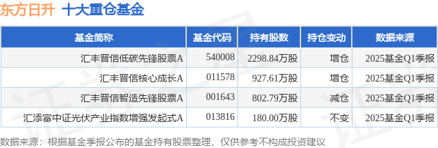 重仓东方日升的公募基金请见下表: