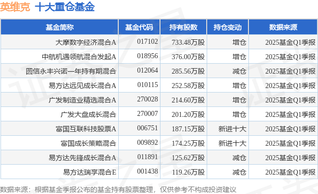 重仓英维克的前十大公募基金请见下表: