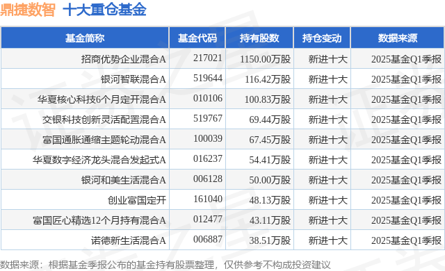 重仓鼎捷数智的前十大公募基金请见下表: