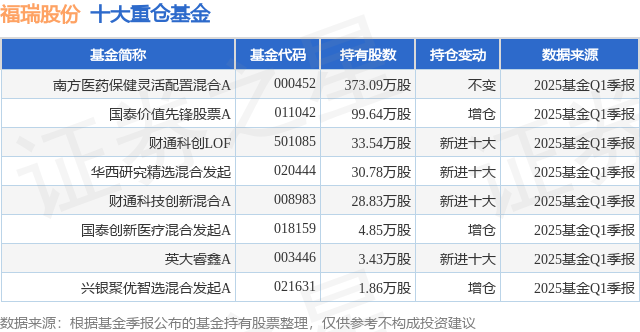 重仓福瑞股份的公募基金请见下表: