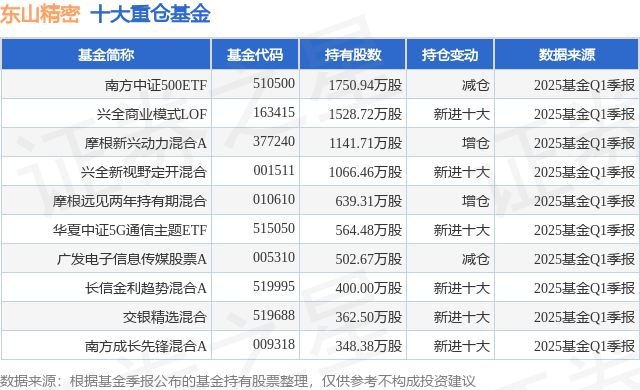 根据2025基金Q1季报公募基金重仓股数据,重仓该股的公募基金共164家,其中持有数量最多的公募基金为南方基金的南方中证500ETF。南方中证500ETF目前规模为948.72亿元,最新净值6.0335(7月8日),较上一交易日上涨1.32%,近一年上涨26.56%。该公募基金现任基金经理为罗文杰。罗文杰在任的基金产品包括:南方中证500ETF联接(LOF)A,管理时间为2013年4月22日至今,期间收益率为98.07%;南方沪深300ETF,管理时间为2013年5月17日至今,期间收益率为113.21%;南方沪深300ETF联接A,管理时间为2013年5月17日至今,期间收益率为103.42%。