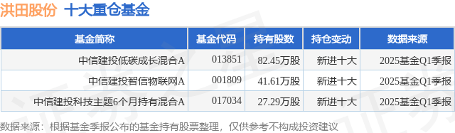 重仓洪田股份的公募基金请见下表: