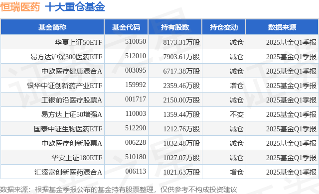 根据2025基金Q1季报公募基金重仓股数据,重仓该股的公募基金共498家,其中持有数量最多的公募基金为华夏基金的华夏上证50ETF。华夏上证50ETF目前规模为457.4亿元,最新净值2.846(7月8日),较上一交易日上涨0.58%,近一年上涨19.93%。该公募基金现任基金经理为徐猛。徐猛在任的基金产品包括:华夏恒生ETF联接A,管理时间为2015年12月21日至今,期间收益率为36.97%;华夏恒生ETF(QDII),管理时间为2015年12月21日至今,期间收益率为40.41%;华夏上证50ETF联接A,管理时间为2016年12月1日至今,期间收益率为30.19%;