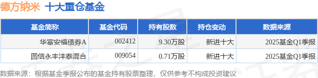 重仓德方纳米的公募基金请见下表: