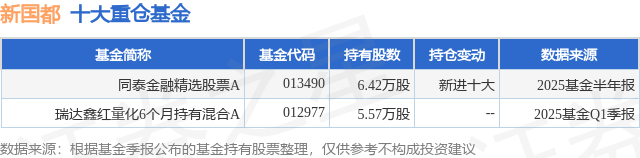 根据2025基金半年报公募基金重仓股数据,重仓该股的公募基金共1家,其中持有数量最多的公募基金为同泰基金的同泰金融精选股票A。同泰金融精选股票A目前规模为0.2亿元,最新净值1.0702(7月9日),较上一交易日下跌0.38%,近一年下跌8.73%。该公募基金现任基金经理为王秀。王秀在任的基金产品包括:同泰开泰混合A,管理时间为2024年1月30日至今,期间收益率为44.32%;同泰慧盈混合A,管理时间为2024年1月30日至今,期间收益率为5.08%;同泰产业升级混合A,管理时间为2024年6月24日至今,期间收益率为111.42%。
