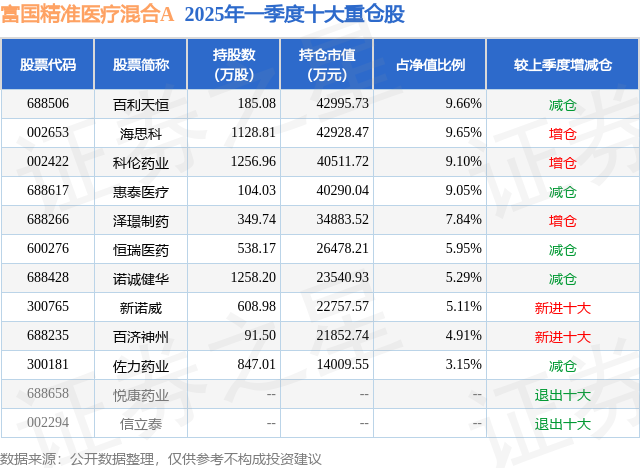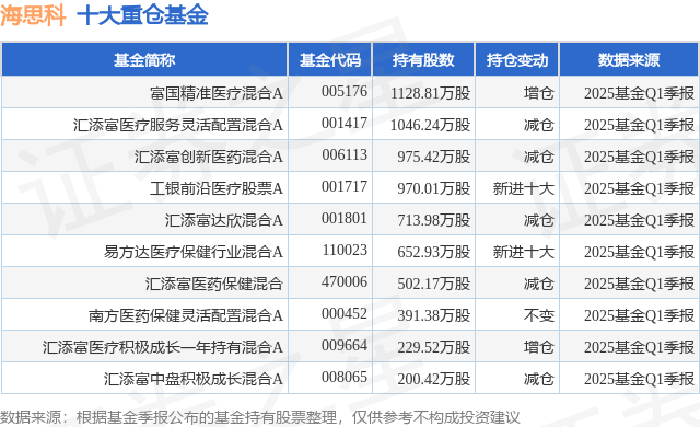 重仓海思科的前十大公募基金请见下表: