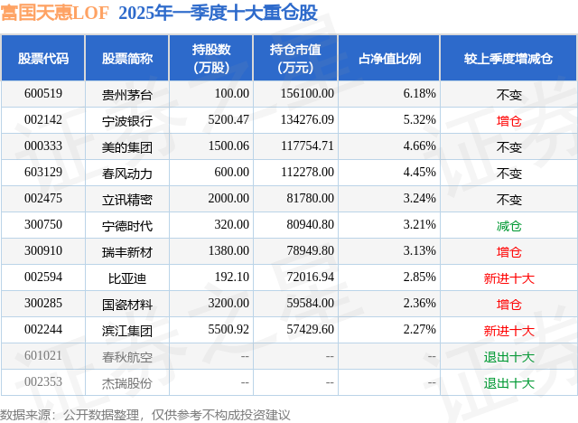 根据2025基金Q1季报公募基金重仓股数据,重仓该股的公募基金共50家,其中持有数量最多的公募基金为富国基金的富国天惠LOF。富国天惠LOF目前规模为236.36亿元,最新净值2.4771(7月9日),较上一交易日上涨0.12%,近一年上涨7.33%。该公募基金现任基金经理为朱少醒。