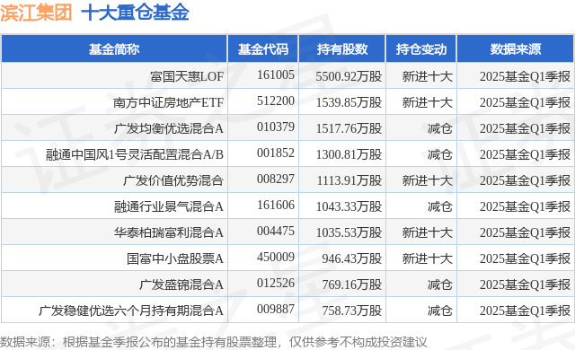 重仓滨江集团的前十大公募基金请见下表: