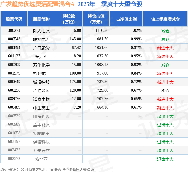 广发趋势优选灵活配置混合A的前十大重仓股如下: