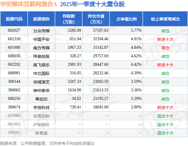 根据2025基金Q1季报公募基金重仓股数据,重仓该股的公募基金共14家,其中持有数量最多的公募基金为华安基金的华安媒体互联网混合A。华安媒体互联网混合A目前规模为45.17亿元,最新净值3.219(7月10日),较上一交易日下跌0.28%,近一年上涨30.01%。该公募基金现任基金经理为胡宜斌。胡宜斌在任的基金产品包括:华安智能生活混合A,管理时间为2019年5月8日至今,期间收益率为139.1%;华安成长创新混合A,管理时间为2019年6月27日至今,期间收益率为117.4%;华安沪港深外延增长灵活配置混合A,管理时间为2022年1月26日至今,期间收益率为-6.26%。