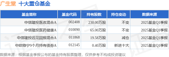 重仓广生堂的公募基金请见下表: