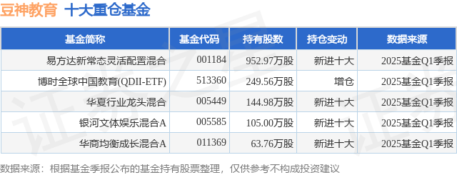 根据2025基金Q1季报公募基金重仓股数据,重仓该股的公募基金共5家,其中持有数量最多的公募基金为易方达基金的易方达新常态灵活配置混合。易方达新常态灵活配置混合目前规模为17.62亿元,最新净值0.611(7月10日),较上一交易日下跌0.33%,近一年下跌16.46%。该公募基金现任基金经理为何一铖。