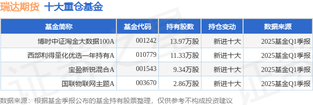 重仓瑞达期货的公募基金请见下表: