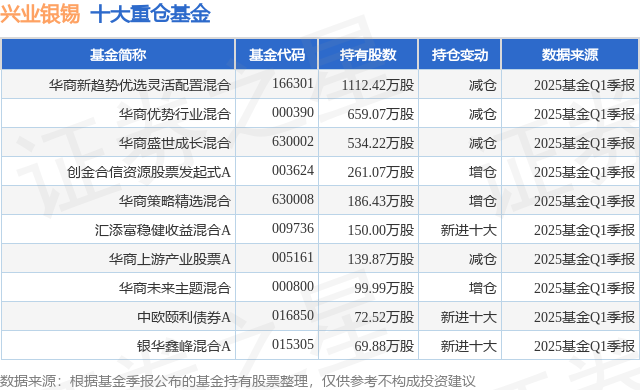 根据2025基金Q1季报公募基金重仓股数据,重仓该股的公募基金共30家,其中持有数量最多的公募基金为华商基金的华商新趋势优选灵活配置混合。华商新趋势优选灵活配置混合目前规模为53.9亿元,最新净值10.4(7月10日),较上一交易日下跌0.17%,近一年上涨15.12%。该公募基金现任基金经理为童立。童立在任的基金产品包括:华商新锐产业混合,管理时间为2016年12月23日至今,期间收益率为19.44%;华商研究精选灵活配置A,管理时间为2017年12月21日至今,期间收益率为158.33%;华商科技创新混合,管理时间为2020年3月6日至今,期间收益率为62.01%;华商研究回报一年持有混合A,管理时间为2023年3月7日至今,期间收益率为-2.57%。